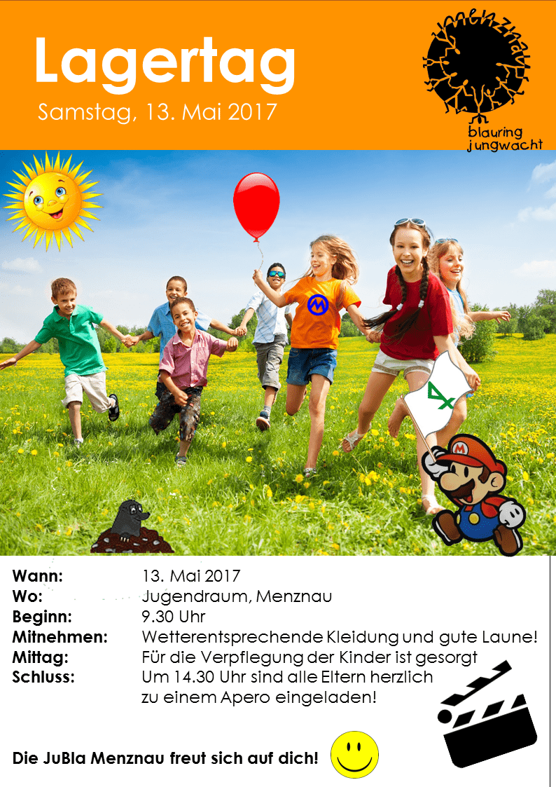 Am Samstag, 13. Mai findet der Lagertag statt. Ab dann kann man sich anmelden für das Sommerlager (23. Juli bis 5. August), also sei dabei!