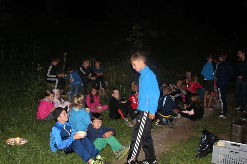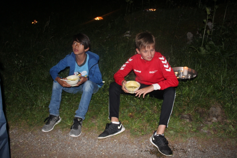 Auch heute durften wir wieder einen supertollen Tag erleben. Am Morgen absolvierten die Kinder in vier Gruppen Posten, um Gegenstände zu gewinnen. Mit diesen Gegenständen bauten sie sich anschliessend ein eigenes Camp auf. Am Nachmittag spielten wir gemeinsam ein Geländespiel im Camp. Da kamen alle Kinder und Leiter ins Schwitzen.